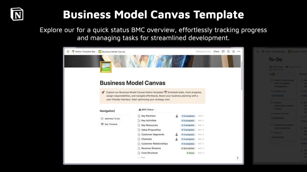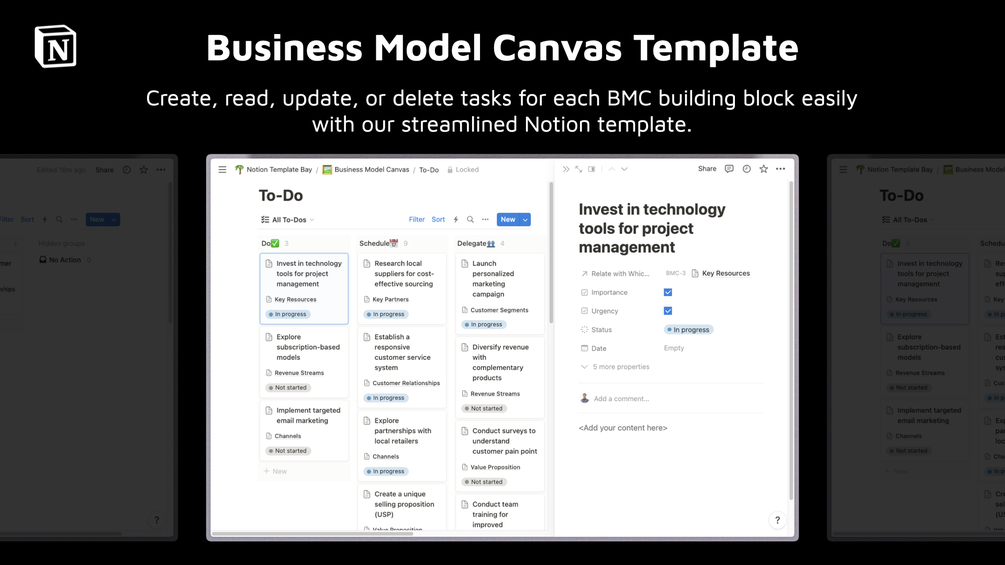 Easy-to-use BMC Notion template to track whole development progress. See details below: