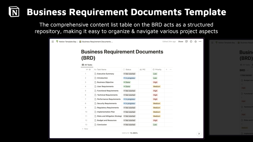 Business requirement documents template, Notion
